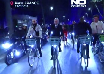 Ο Εμανουέλ Γκρεγουάρ πηγαίνει στο δημαρχείο του Παρισιού με ενοικιαζόμενο ποδήλατο μετά τη νίκη του...