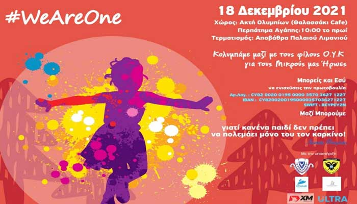 Για 5η συνεχή χρονιά το Ίδρυμα «Μικροί Ήρωες» διοργανώνει την εκδήλωση «Κολυμπάμε και φέτος με τους φίλους ΟΥΚ για τους δικούς μας Μικρούς Ήρωες», το Σάββατο 18 Δεκεμβρίου και ώρα 10:00 π.μ κατά μήκος της παραλίας Λεμεσού.