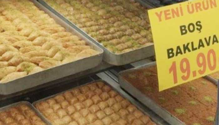 Σύμφωνα με την τουρκική εφημερίδα Τζουμχουριέτ, ο μπακλαβάς χωρίς φιστίκι πωλείται στην τιμή των 19,90 τουρκικών λιρών αντί των 150 που πωλείται ο κανονικός. Επίσης, το γνωστό “τοστάδικο” Μεχμέτ Ερόλ στο Γκαζιάντεπ, την Άγκυρα και την Κωνσταντινούπολη άρχισε να πουλάει άδειο τοστ για δύο λίρες. Ο σύμβουλος του ηγέτη της αξιωματικής αντιπολίτευσης, Ντενίζ Ντεμίρ ανέβασε φωτογραφία από μενού στο τουίτερ με τη γνωστή παραδοσιακή τουρκική πίτα ‘γκιοζλεμέ’ που άλλοτε φτιάχνεται με τυρί, πατάτα ή κιμά σχολιάζοντας: “Μετά τον σκέτο μπακλαβά και το σκέτο τοστ, τώρα και σκέτο γκιοζλεμέ…”. Στο μενού διευκρινίζεται ότι η πίτα είναι άδεια και πωλείται έναντι 10 λιρών.