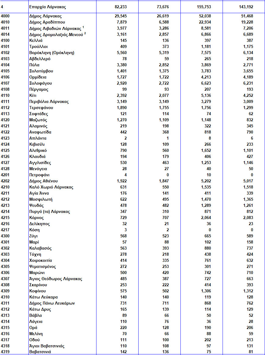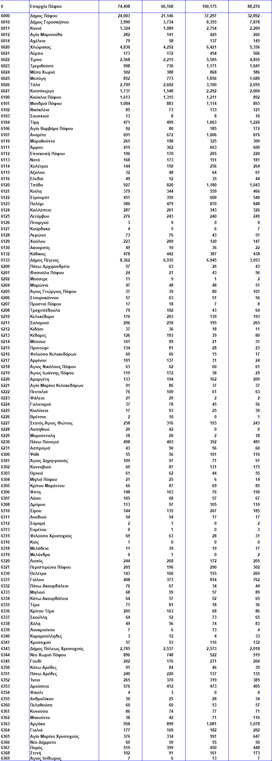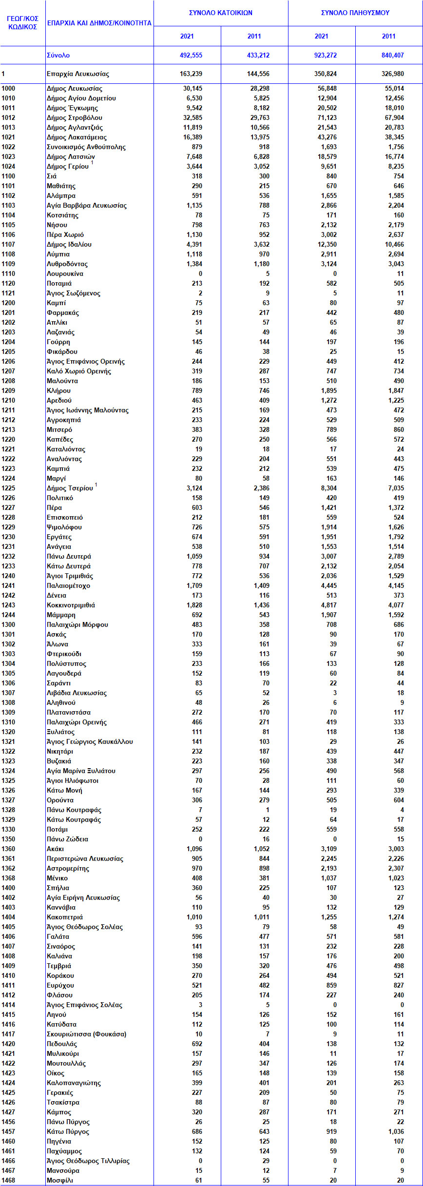 Η Στατιστική Υπηρεσία ανακοινώνει τα προκαταρκτικά αποτελέσματα της Απογραφής Πληθυσμού και Κατοικιών 2021 κατά επαρχία και δήμο/κοινότητα.