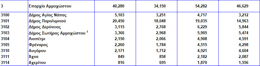 Στην επαρχία Αμμοχώστου, ο Δήμος Παραλιμνίου με 20.450 κατοικίες και πληθυσμό 19.035 αποτελεί το 50,8% των κατοικιών και το 35,1% του πληθυσμού της επαρχίας.