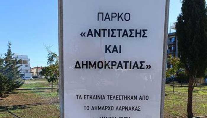 Πάρκο στη Λάρνακα ονομάστηκε σε «Πάρκο Δημοκρατίας και Αντίστασης», με στόχο, όπως ανέφερε σε χαιρετισμό του ο Δήμαρχος Ανδρέας Βύρας, να συμβολίζει την αιώνια εκτίμηση προς τους ήρωες του πολέμου και μάρτυρες της τουρκικής εισβολής στην Κύπρο.