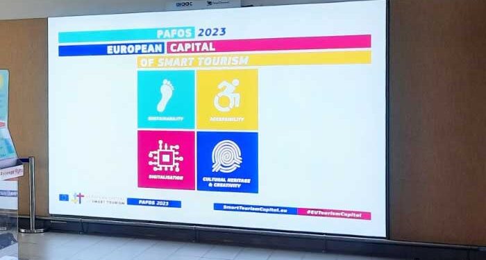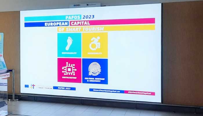 Το Διεθνές Αεροδρόμιο Πάφου προβάλει πλέον εκτενώς τον τίτλο της Πάφου, ως Ευρωπαϊκή Πρωτεύουσα Έξυπνου Τουρισμού 2023 συμβάλλοντας καθοριστικά στην γνωστοποίηση της διάκρισης αυτής αλλά και του θεσμού γενικότερα.