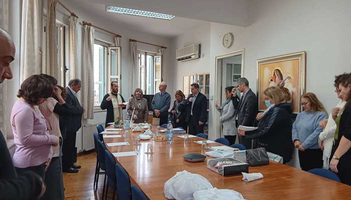 Χθες Τετάρτη, 17 Ιανουαρίου 2024, η Επιτροπή Κατεχόμενων Δήμων πριν την έναρξη της προγραμματισμένης πρώτης συνεδρίας της για αυτή τη χρονιά, πραγματοποίησε Αγιασμό και έκοψε την καθιερωμένη Πρωτοχρονιάτικη της Βασιλόπιττα στα Γραφεία της Ένωσης Δήμων στη Λευκωσία, παρουσία του Προέδρου και των Μελών της Επιτροπής Κατεχόμενων Δήμων και του προσωπικού της Ένωσης Δήμων.