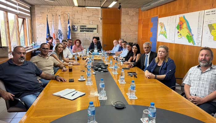Συνάντηση αντιπροσωπειών του Δήμου Παραλιμνίου – Δερύνειας και του Δήμου Αμμοχώστου πραγματοποιήθηκε την Παρασκευή, 24 Οκτωβρίου 2025, στο Δημαρχείο Παραλιμνίου – Δερύνειας, με σκοπό την αναβίωση των εκδηλώσεων που λάμβαναν χώρα στην Αμμόχωστο πριν από το 1974.