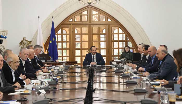 Σύσκεψη με τη συμμετοχή των αρχηγών και εκπροσώπων των κοινοβουλευτικών κομμάτων, με θέμα τη μεταρρύθμιση της Τοπικής Αυτοδιοίκησης, πραγματοποίησε σήμερα ο Πρόεδρος της Δημοκρατίας κ. Νίκος Χριστοδουλίδης, στην παρουσία του Υπουργού Εσωτερικών κ. Κωνσταντίνου Ιωάννου. Κατά τη σύσκεψη, ο Πρόεδρος Χριστοδουλίδης και ο κ. Ιωάννου ενημέρωσαν τους αρχηγούς/εκπροσώπους των κομμάτων για την πορεία υλοποίησης της μεταρρύθμισης, διαβεβαιώνοντας για τη βούληση της Κυβέρνησης να προχωρήσει με την εφαρμογή της νομοθεσίας όπως αυτή έχει ψηφιστεί από την Βουλή των Αντιπροσώπων.