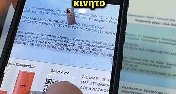 Ο Επαρχιακός Οργανισμός Αυτοδιοίκησης Αμμοχώστου ενημερώνει ότι για επίτευξη του στόχου “Ο ΕΟΑΑ πάει paperless” οι πολίτες στον πιο πρόσφατο λογαριασμό της υδατοπρομήθειας τους, λαμβάνουν ένα μοναδικό κωδικό QR όπου σαρώνοντας τον μπορούν να εγγραφούν στο σύστημα για λήψη του λογαριασμού τους ηλεκτρονικά.