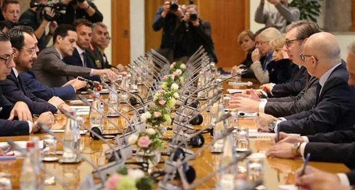 Σύμφωνα με ανακοίνωση από την Προεδρία, πραγματοποιήθηκαν την Πέμπτη στο Βελιγράδι, οι εργασίες της Συνόδου του 3ου Συμβουλίου Συνεργασίας Κύπρου – Σερβίας, με επικεφαλής τον Πρόεδρο της Δημοκρατίας Νίκο Χριστοδουλίδη και τον Πρόεδρο της Σερβίας Αλεξάνταρ Βούτσιτς.