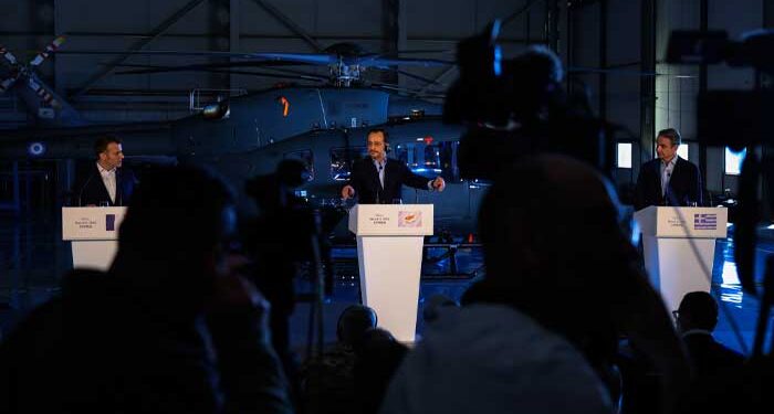 Μήνυμα ενότητας και αλληλεγγύης έστειλαν τη Δευτέρα ο Πρόεδρος Νίκος Χριστοδουλίδης, ο Έλληνας Πρωθυπουργός Κυριάκος Μητσοτάκης, και ο Γάλλος Πρόεδρος Εμανουέλ Μακρόν, μετά από τριμερή συνάντηση των τριών ηγετών στην αεροπορική βάση Ανδρέας Παπανδρέου, όπου συζήτησαν τις τελευταίες εξελίξεις την ευρύτερη περιοχή.