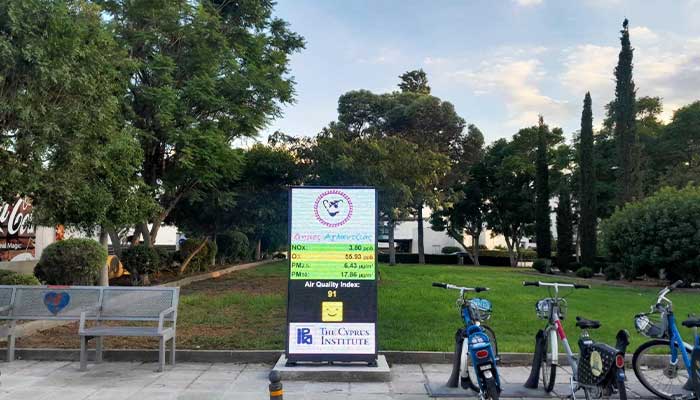 Στο πλαίσιο του έργου, και σε συνεργασία του Κέντρου Αριστείας του Κυπριακού Ινστιτούτου “CARE-C”, έχει τοποθετηθεί ηλεκτρονική πινακίδα σε κεντρικό σημείο της οδού Κερύνειας, η οποία εμφανίζει σε πραγματικό χρόνο πληροφορίες στους πολίτες για την ποιότητα του αέρα στην περιοχή με στόχο την ενημέρωση και εκπαίδευση των πολιτών για την ατμοσφαιρική ρύπανση και την κλιματική αλλαγή.