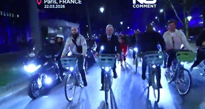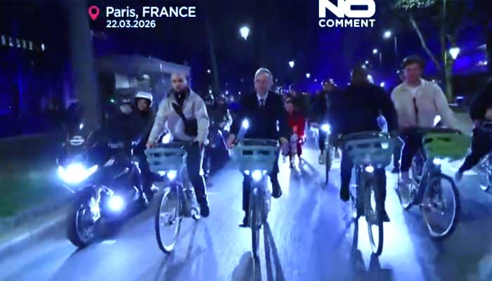 Ο υποψήφιος της αριστεράς, που πέτυχε καθαρή νίκη, εθεάθη να διασχίζει με το ποδήλατό του τους δρόμους της γαλλικής πρωτεύουσας, χαιρετώντας τους κατοίκους στη διαδρομή.