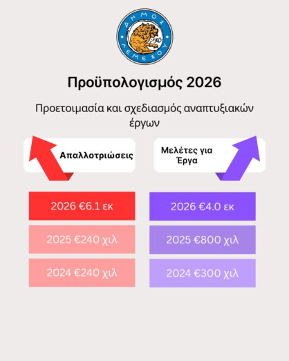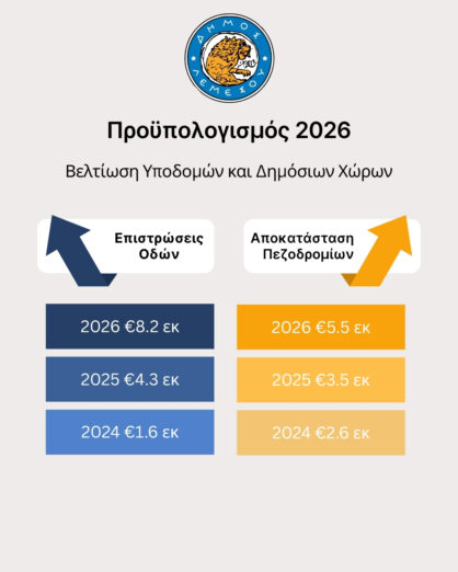 Σε δηλώσεις του στην «Αυτοδιοίκηση Cy», ο δήμαρχος Λεμεσού Γιάννης Αρμεύτης ανέφερε ότι ο προϋπολογισμός του 2026 περιλαμβάνει αυξημένα κονδύλια σε τομείς που αφορούν άμεσα την καθημερινότητα των δημοτών. Όπως σημείωσε, προτεραιότητα δίνεται, μεταξύ άλλων, στις ασφαλτοστρώσεις, στην επιδιόρθωση πεζοδρομίων, στην ενίσχυση της καθαριότητας, στην ανάπτυξη χώρων πρασίνου, στην αναβάθμιση του δημοτικού στόλου, καθώς και στην εκπόνηση μελετών για την προώθηση έργων υποδομής και την καλύτερη προετοιμασία του Δήμου ενόψει ευρωπαϊκών χρηματοδοτήσεων.