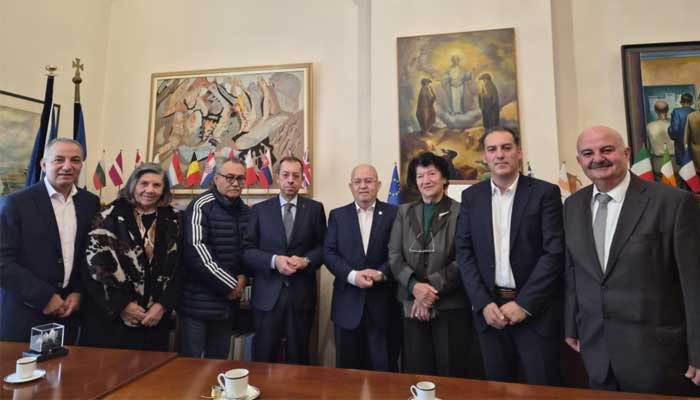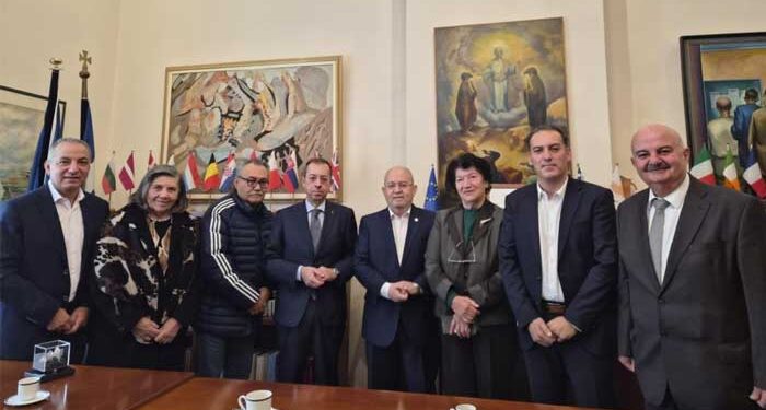 Αντιπροσωπεία της Επιτροπής Κατεχόμενων Δήμων έγινε δεκτή χθες, Πέμπτη, 8 Ιανουαρίου 2026, από τον Έλληνα Πρέσβη, Α.Ε. κ. Κόλλια, στην Ελληνική Πρεσβεία στη Λευκωσία για συνάντηση εθιμοτυπικού χαρακτήρα.