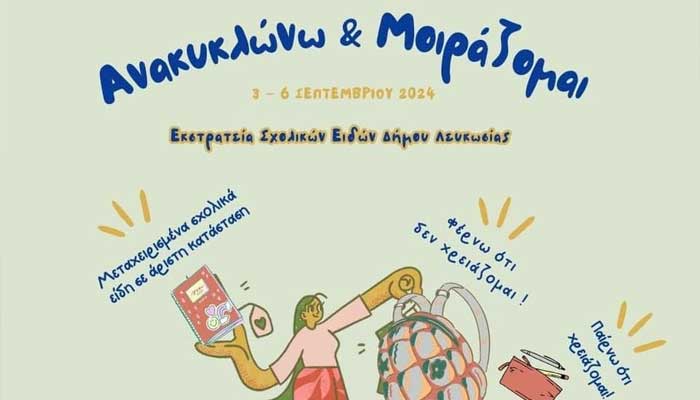 Η συλλογή μεταχειρισμένων σχολικών ειδών βρίσκεται σε εξέλιξη από τις 3 Σεπτεμβρίου και θα διαρκέσει μέχρι τις 6 Σεπτεμβρίου. Το ωράριο είναι από τις 8:00 έως τις 15:00. Για πληροφορίες, μπορείτε να επικοινωνήσετε στο τηλέφωνο 22797000.