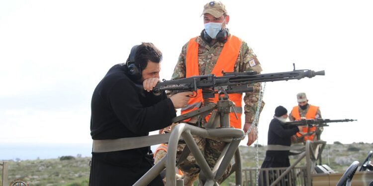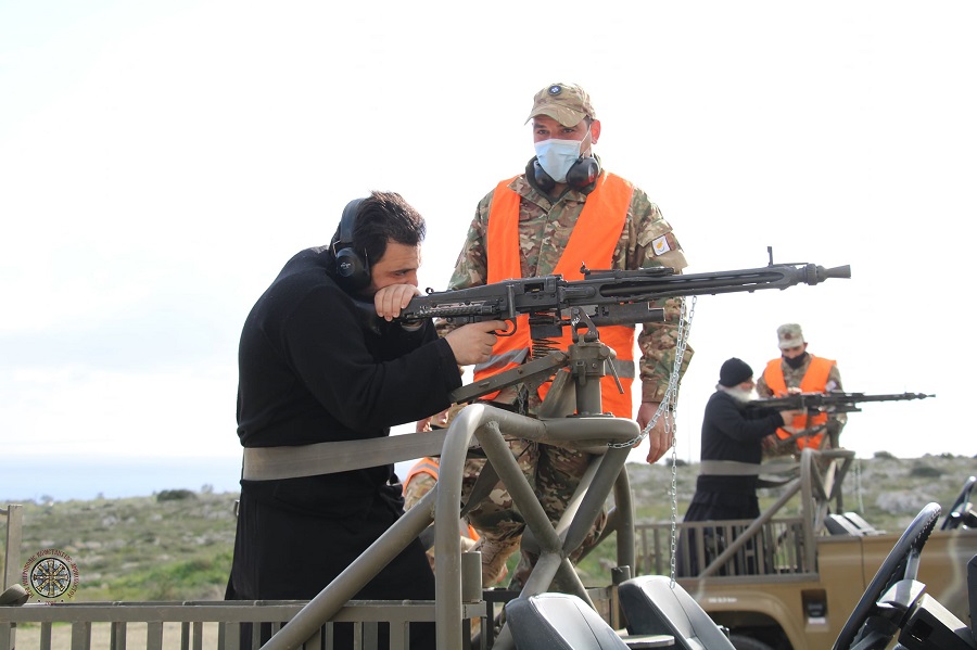 Οι κληρικοί συμμετείχαν σε βολές με πλοπολυβόλο τύπου HK-11, G3 και περίστροφο στο ανακαινισμένο πεδίο βολής στην περιοχή Φανός στον Πρωταρά.
