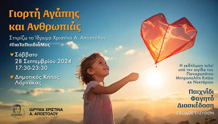 Το Ίδρυμα Χριστίνα Α. Αποστόλου, διοργανώνει και φέτος τη φιλανθρωπική Γιορτή Αγάπης και Ανθρωπιάς.