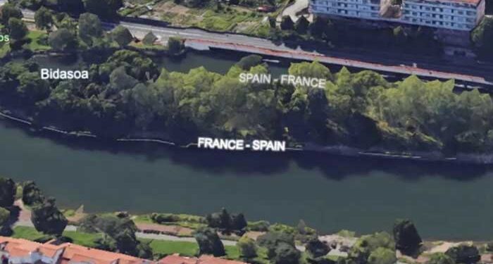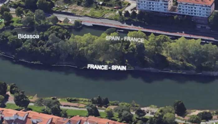 Η Νήσος των Φασιανών, μήκους μικρότερου των 200 μέτρων και πλάτους περίπου 40 μέτρων, βρίσκεται ακριβώς πάνω στη συνοριακή γραμμή μεταξύ Γαλλίας και Ισπανίας και αλλάζει εθνική κυριαρχία δύο φορές τον χρόνο, κάθε έξι μήνες.
