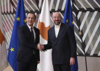 Συνάντηση και γεύμα εργασίας με τον Πρόεδρο του Ευρωπαϊκού Συμβουλίου Σαρλ Μισέλ είχε στις 13:00 (τοπική ώρα, 14:00 ώρα Κύπρου)...