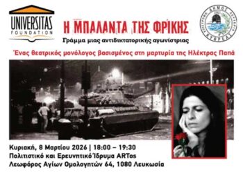Ο Δήμος Κυθρέας, με την υποστήριξη του Ιδρύματος Universitas, τιμά την Παγκόσμια Ημέρα της Γυναίκας παρουσιάζοντας, την Κυριακή 8 Μαρτίου 2026, ...